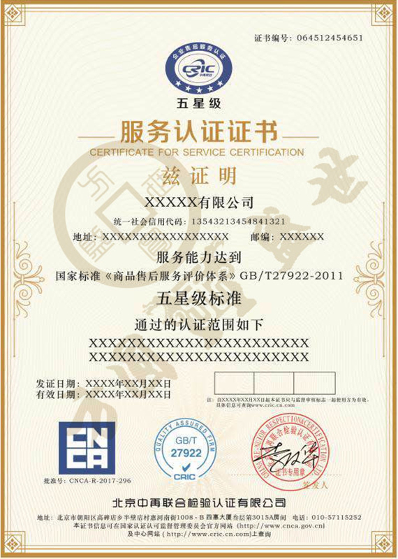 AAA 信用企业认证:证明企业的信用状况。售后服务认证:如五星、...