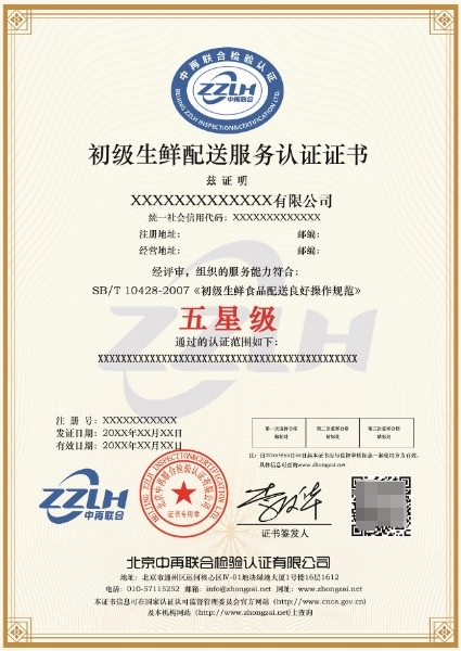 初级生鲜食品配送服务认证证书:适用范围及认证内容