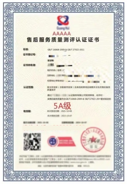 5A级售后服务质量测评证书:企业服务实力的“金字招牌”