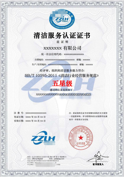 五星清洁服务认证证书是对清洁服务企业在管理、技术、服务等多个方面进行综合评估后颁发的一种荣誉证书。