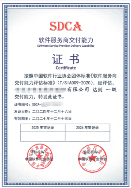 SDCA软件服务商交付能力评估证书是由中国软件行业协会权威评估并颁发的,用于全面评估软件服务商交付能力的第三方认证,证书分为一级至四级,级别越高代表企业综合实力越强,有效期为三年