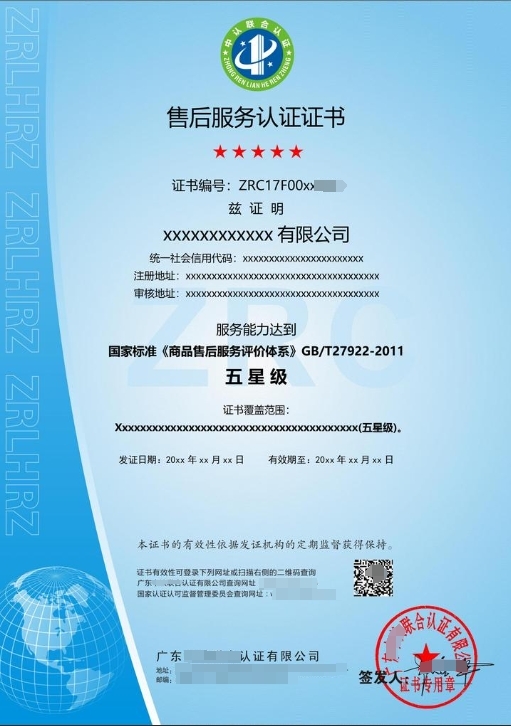 AAA 信用企业认证:证明企业的信用状况。售后服务认证:如五星、...