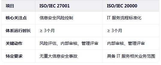 体系运行:按照 ISO 27001 标准要求,建立信息安全管理体系,并实际运行满 3 个月。