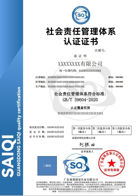 1. 整改通过后,认证机构颁发GB/T 39604社会责任管理体系认证证书,有效期3年,在国家认监委官网公示。