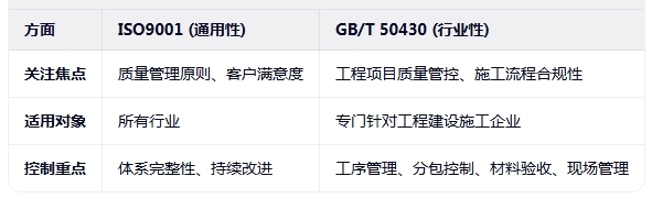 ISO9001 vs GB/T 50430:核心区别