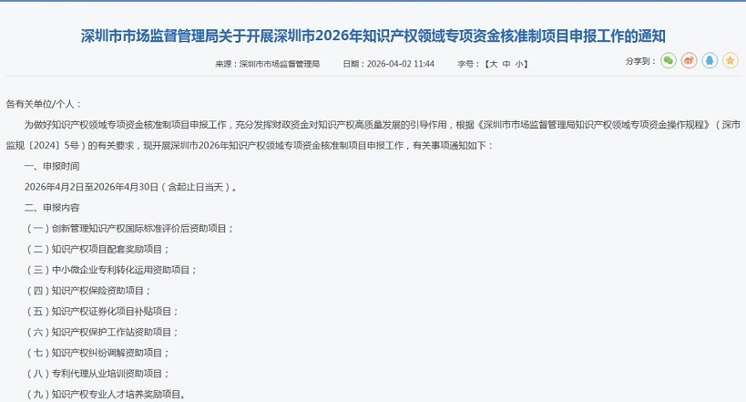 ·申请专项资金的有关知识产权业务归口深圳市管理和统计;