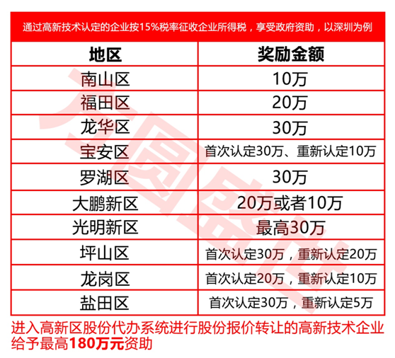6、取得国家高新技术企业证书后可享受各区相应认定补贴:
