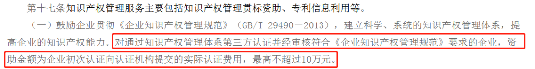 在采购网查询可知,通过知识产权管理体系可有2-8分的加分。在激烈的竞争中,这对投标结果有着怎样的影响不言而喻。各地政府也有相对应的补贴政策。