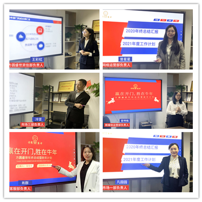 企业发展离不开阶段性的总结和阶段性的目标制定。在此次年度总结会议上,方圆盛世各部门负责人依次对2020年的业绩变化、问题分析及部门状态等多个维度做了详细的汇报与分享,并在报告中阐述了2021年的整体战略目标以及行动策略,让大家对各部门的年度目标、工作重点、开展思路有了更加直观和深入的了解。