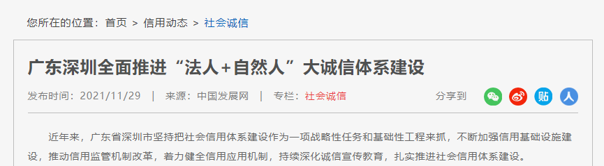 在深圳市政府引领信用工作发展方向的基础上,开展特色信用工作,制定守信激励政策,以应用为落脚点,深入拓展信用应用场景,制定守信激励政策。