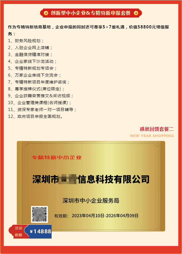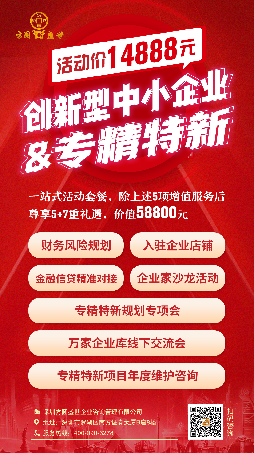 时光荏苒,岁月如梭,为答谢新老客户长期以来对方圆盛世的支持与厚爱,特推出专精特新特惠套餐回馈广大客户,助力“专精特新”企业高质量发展。