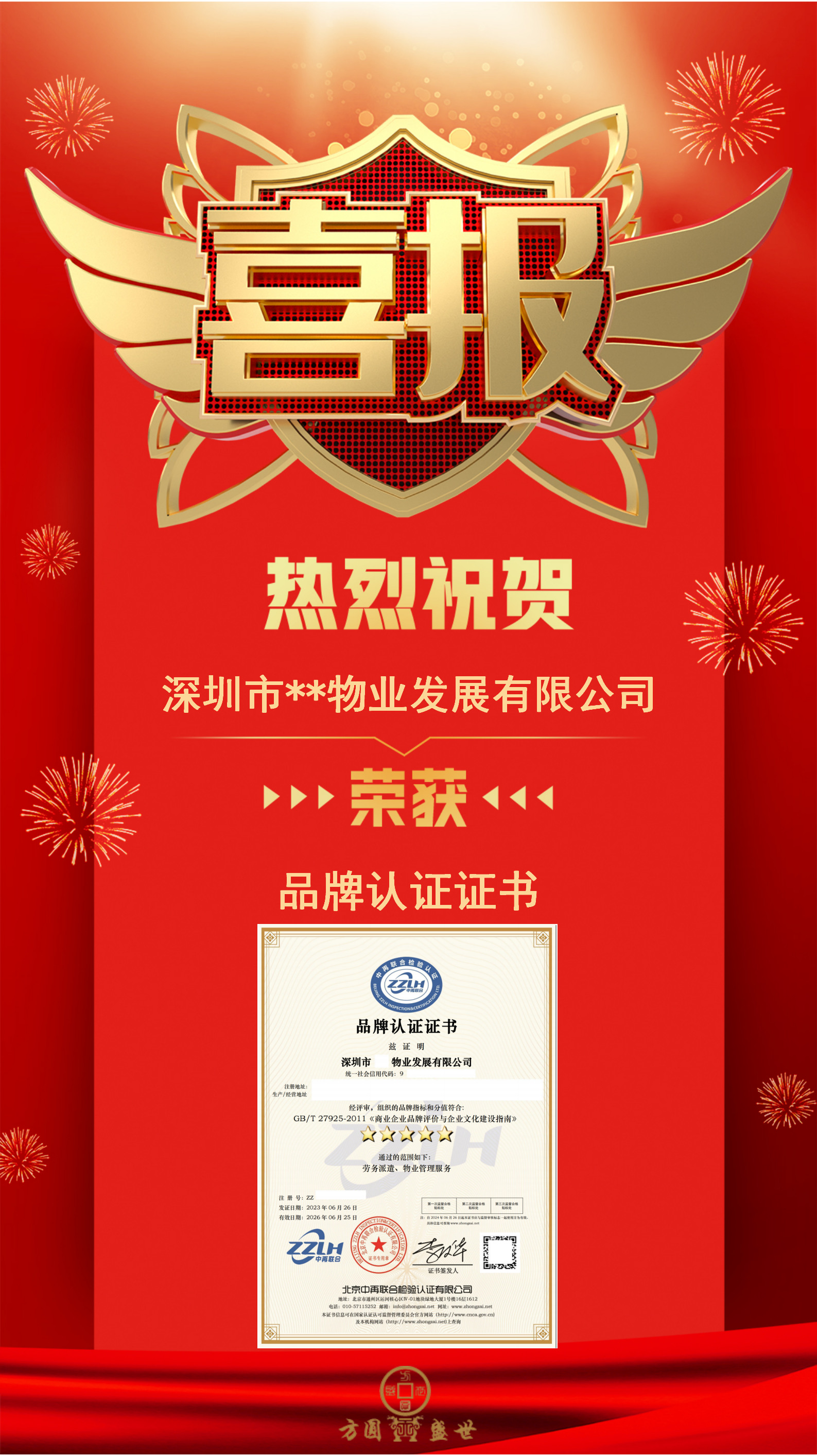品牌认证证书分为“能力,质量,声誉,企业文化和影响力”以及“品牌”五个指标。“规划,品牌管理和安全,机制,企业质量,产品质量,服务质量,品牌知名度,品牌声誉,品牌忠诚度,社会责任,诚信,精神信仰,宣传和提升,客户感知,行业沟通,行业影响力,社会影响力”等17个二级指标,52个三级指标,严格强调了企业的服务质量、社会责任、诚信和企业文化。