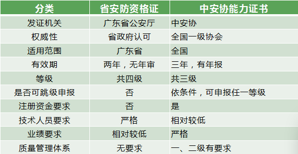 能力证书与省安防的区别