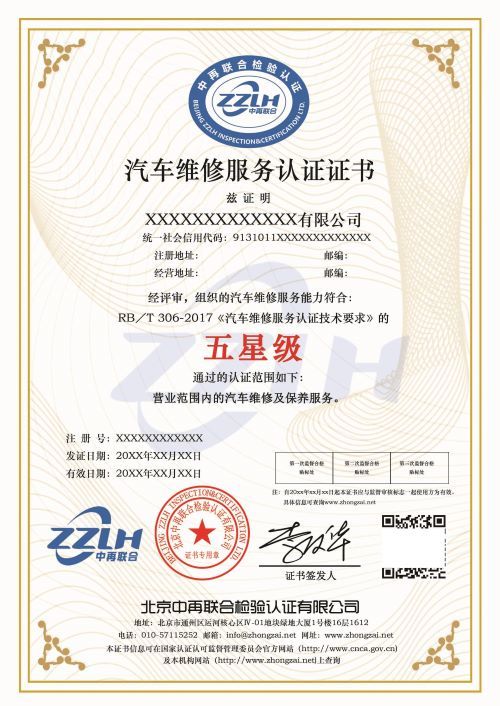 汽车维修服务认证证书是从事汽车维修行业的企业,在通过国家相关部门的严格审核后颁发的。该证书是由中国汽车工业国际合作有限公司(CAC)颁发。