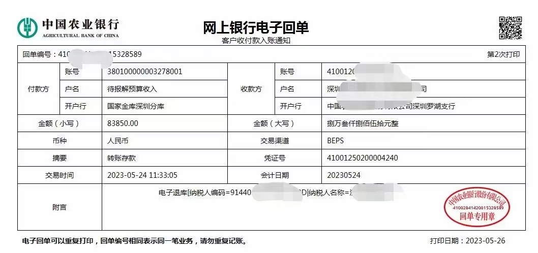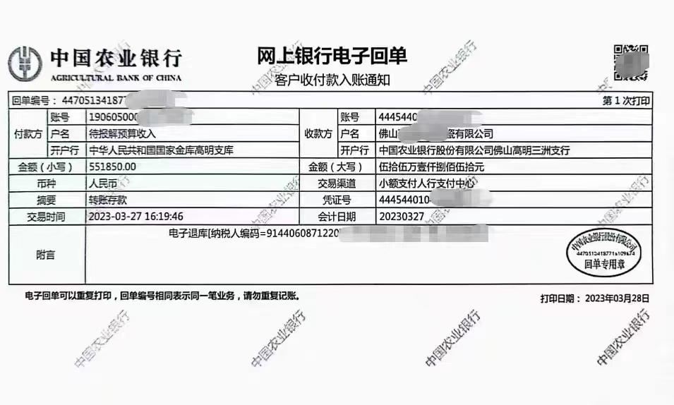 企业补贴到款截图