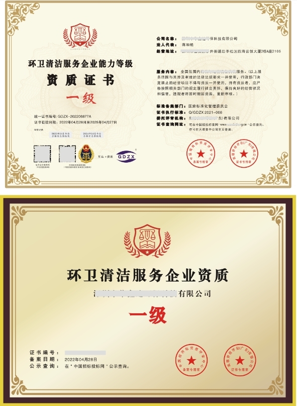 环卫清洁服务企业等级资质认证是按照不同的标准和要求进行的。