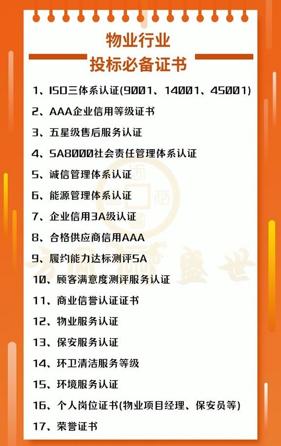 另外还有个人岗位证书(物业项目经理、保安员等)及荣誉证书等,更多证书办理详情可直接与在线客服联系,或拨打官方热线:400-090-3278。