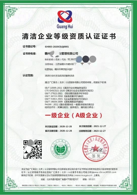 清洁行业企业等级认证证书是对清洁服务企业的服务能力、专业水平进行的评价。清洁行业资质认证工作的开展,对于促进我国清洁行业认证认可体系建设、推动清洁服务工作的规范实施和健康发展将起到积极作用。
