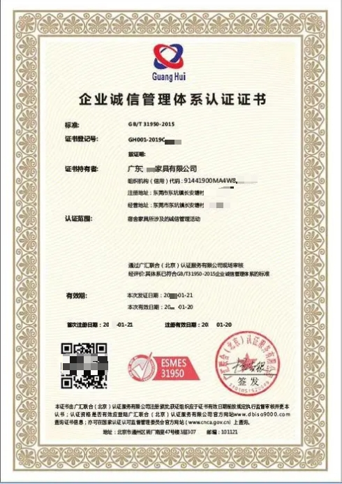 企业诚信管理体系认证是由国家认证认可监督管理委员会批准的认证机构,如果符合《GB/T31950-2015企业诚信管理体系》国家标准,通过企业诚信管理体系认证,将颁发认证证书,证书在国家认监委网站上予以公示。它和企业拥有的“商标”一样,都是一种无形资产,在招投标中享有1-3分的加分。