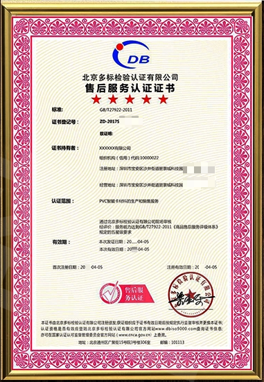 服务设施认证:包括售后服务设施的规划、设计、建设、运行和维护等方面的认证。