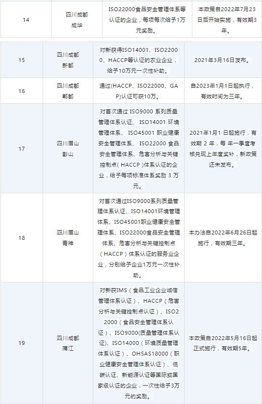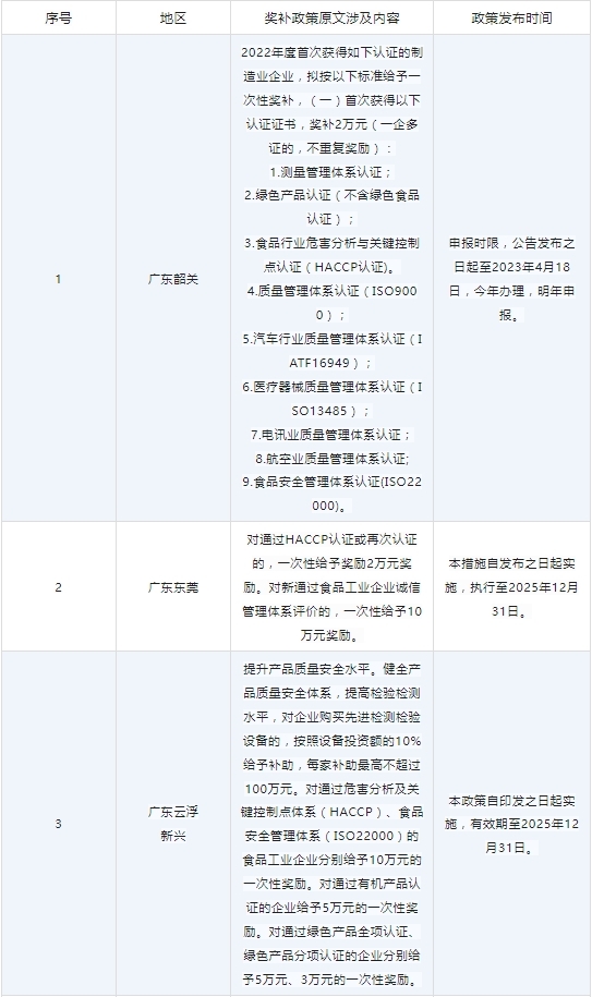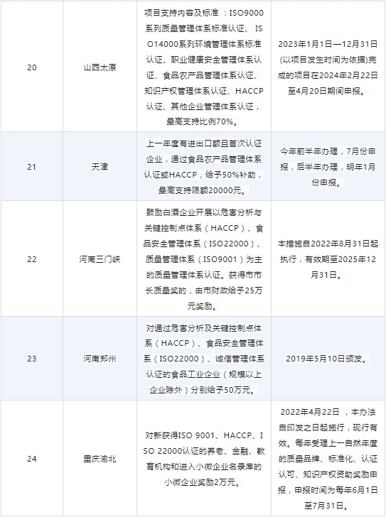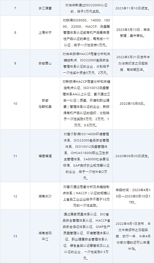 各省份ISO22000、HACCP认证补贴及申报政策已陆续出炉,小编汇总了各大地区的补贴情况,供大家参考,不要错过这些补贴哦!