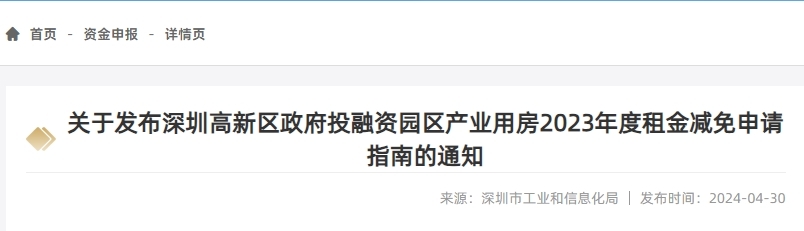 深圳市软件产业基地、深圳湾科技生态园、深圳湾创业投资大厦、深圳湾创新科技中心、深圳市生物医药创新产业园产业用房租金减免;减免范围为2023年7月1日至2024年6月30日产业用房租金。