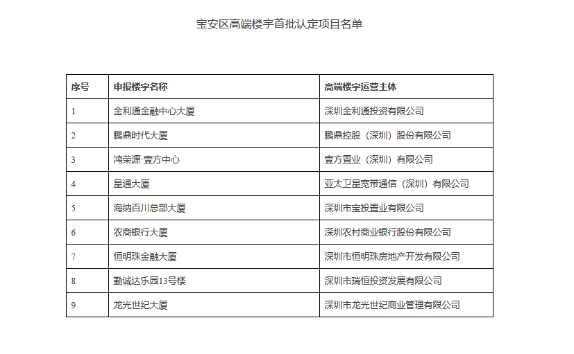 2.入驻楼宇符合《操作规程》第一条高端写字楼宇认定条件(名单附后)。