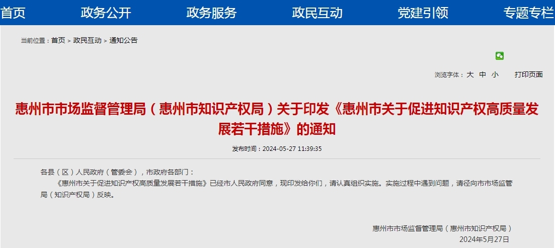 (十九)本措施由惠州市市场监管局负责解释。惠州市市场监管局应结合本市实际制定具体实施细则,确保各项措施全面落地落实。