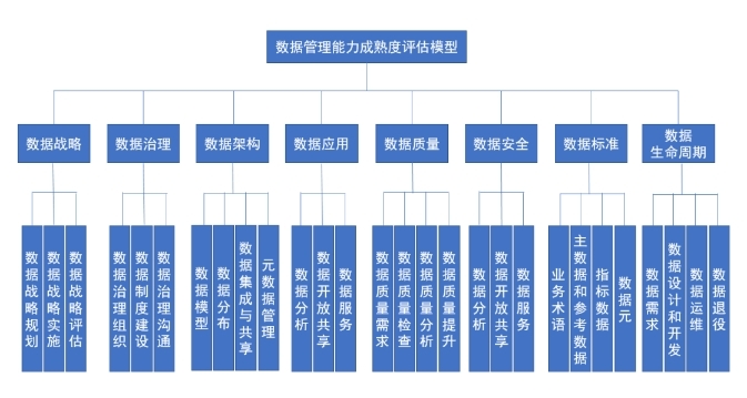 DCMM结合数据生命周期管理各个阶段的特征,按照组织、制度、流程和技术对数据管理能力进行分析、总结,提炼出了数据战略、数据治理、数据架构、数据应用、数据安全、数据质量、数据标准和数据生存周期8个核心能力域,细分为28个过程域和445条能力等级标准。