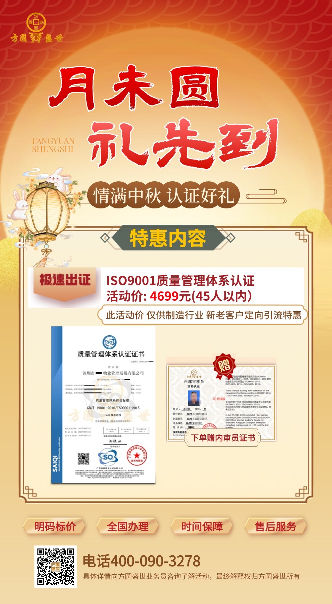 认证价:4699元;此时间内下定, 免费赠送内审员证书
