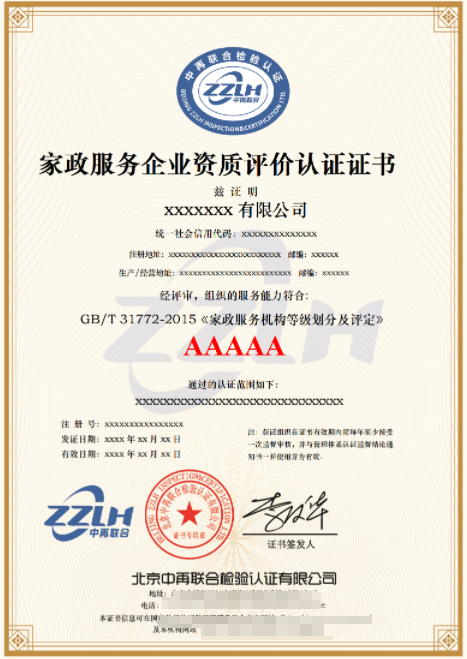 - 领取证书:如果企业符合资质证书的要求,认证机构将向企业颁发家政服务企业资质评价认证5星证书。