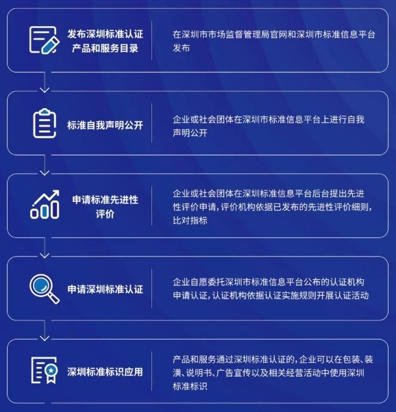 深圳标准认证是由国家认监委批准、深圳市市场监督管理局主管推进的,是高端产品和优质服务的认证活动,借鉴国际通行做法,定位“国内领先、国际一流”的评价体系,用先进标准定义卓越品质,通过认证传递质量信任,满足高品质需求、高质量发展为目标而建立的高端品质认证。