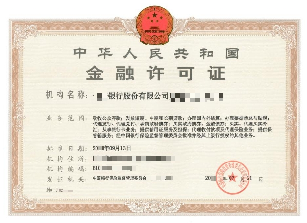 银行业许可证:包括商业银行、政策性银行、城市商业银行、农村商业银行、村镇银行等;