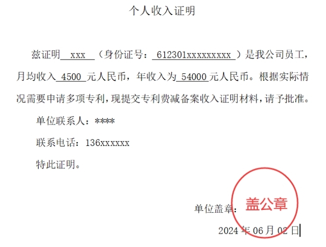 • 所在单位出具的个人收入证明(单位公章,上年度年收入低于6万元);