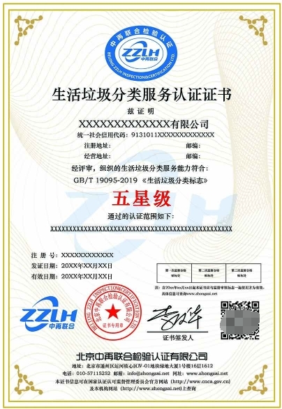 随着城市化进程的加速和居民生活水平的提高,生活垃圾产生量急剧增加,如何有效、科学地处理这些垃圾,减少环境污染,促进资源循环利用,成为了社会各界普遍关注的问题。生活垃圾分类服务能力认证证书是对从事生活垃圾分类服务的企业或机构在垃圾分类方案制定、设施设备配置、宣传教育推广、垃圾收集运输、资源回收利用等方面能力的认可和证明。我国的生活垃圾一般可分为四大类:可回收垃圾、厨余垃圾、有害垃圾和其他垃圾。