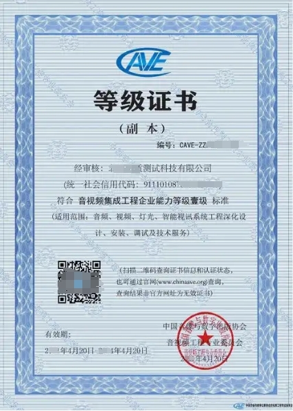 等级评定:是从事音频、视频、灯光、智能视讯系统集成工程深化设计、安装、调试及维修服务的工程企业综合技术能力等级的评定。