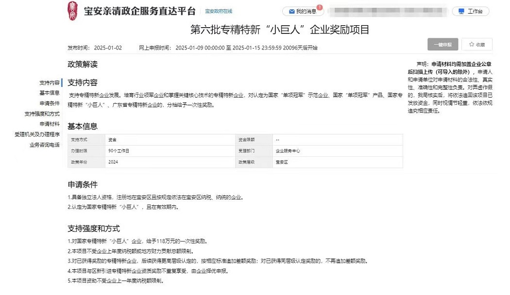 2.认定为国家专精特新“小巨人”,且在有效期内。
