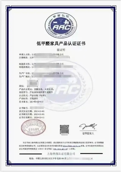 颁发证书:对于符合认证标准的家具产品和企业,权威部门或认证机构将颁发低甲醛家具产品认证证书。
