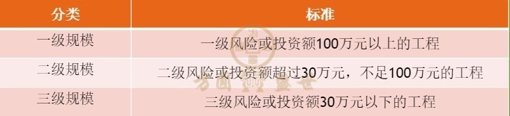 以下为各级工程规模分类标准: