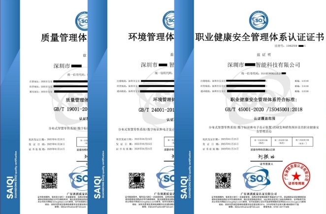 三体系包括ISO9001质量管理体系认证、ISO14001环境管体系认证、ISO45001职业健康安全管理体系认证。