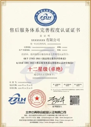 售后服务认证是国家批准的我国第一个全国性全行业服务类认证,采用GB/T27922国家标准的商品售后服务评价体系认证正式开展。企业最终获得哪一级的证书,要按照最终评分结果(满分100分)获颁相应的星级证书。
