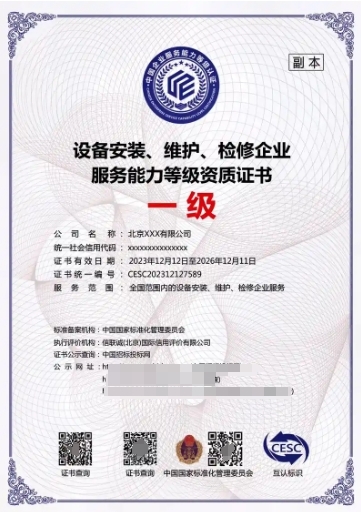 设备维修安装运行企业能力等级证书的应用范围广泛,涵盖多个领域,包括但不限于: