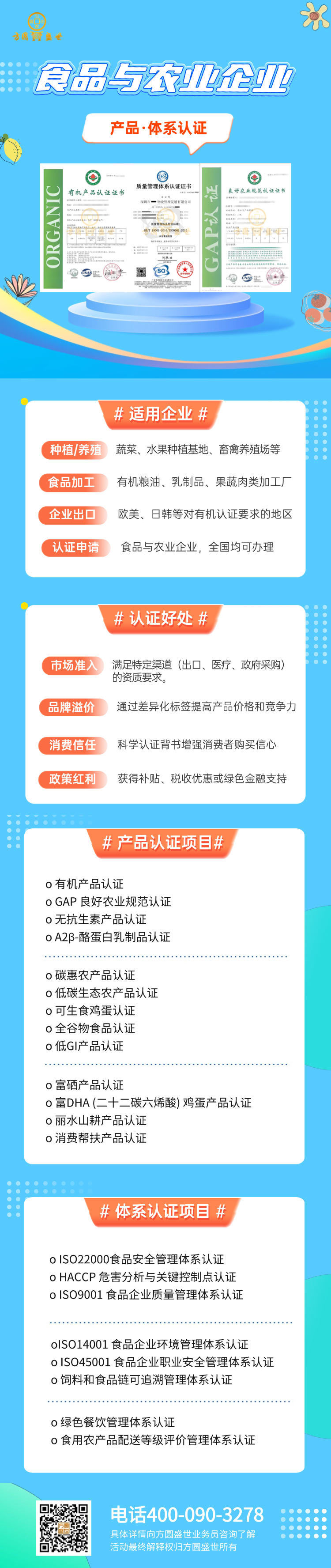 食品与农业企业行业资质认证项目汇总_附产品与体系认证清单