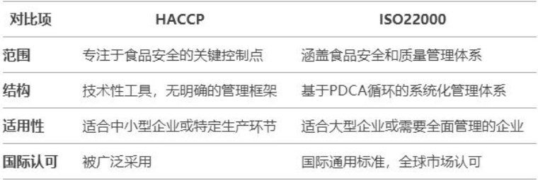 HACCP vs ISO22000两个体系的区别
