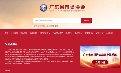 广东省市场协会是2001年8月经广东省民政厅登记注册的非营利性、全省性的群众团体,是独立的法人社团,原隶属于广东省市场监督管理局(原广东省工商行政管理局),2009年机构改革实现脱钩。十余年来,协会积极开展市场管理、组织和沟通各类市场之间、省内外市场之间以及专业委员会会员之间的联系与交流,促进市场合理布局、升级改造、品牌建设和信用体系建立与完善。市场协会下辖综合办公室、评定评价中心(会员服务中心)、商品交易市场委员会、农资专业委员会、标准化工作委员会、融媒体中心等六个部门。