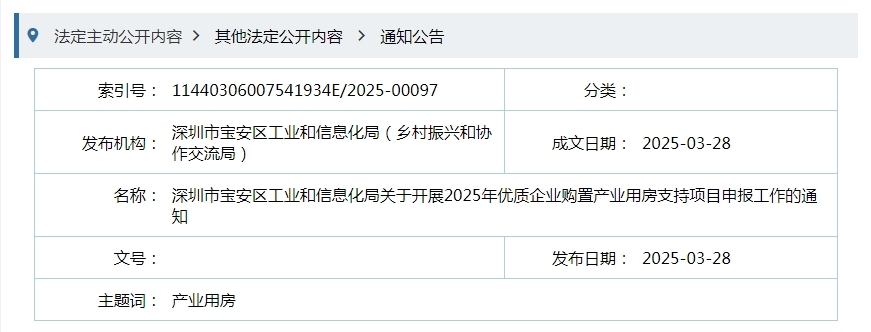 根据《宝安区关于促进先进制造业和现代服务业高质量发展的若干措施》等文件精神,我局现开展2025年优质企业购置产业用房支持项目申报工作,相关通知如下: