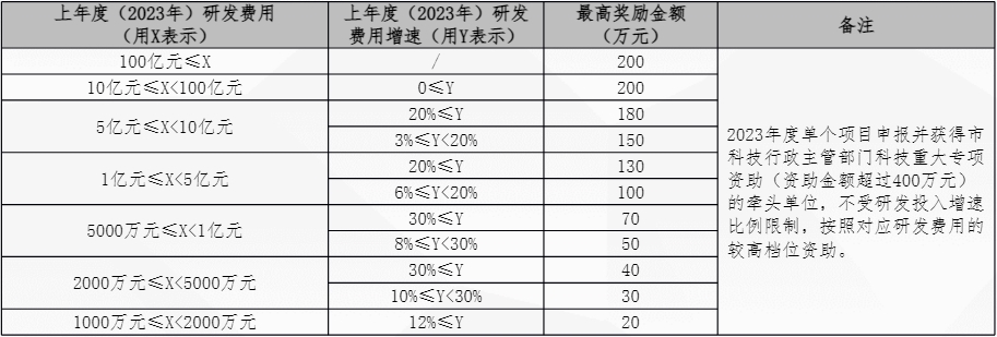 对研发投入费用及增速情况符合条件的研发统计核算企业,按照其上一年度扣除委托外部研究开发费用,每年最高资助200万元。