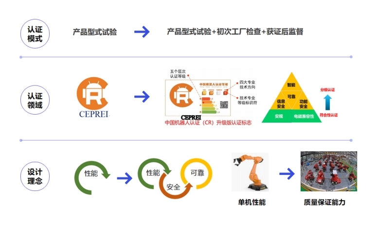 随着中国机器人产业的快速发展,政府为加强行业管理、提升产品质量,于2016年正式推出CR认证,依据国家标准化管理委员会发布的系列标准(如GB/T 37283-2019《服务机器人安全要求》等)实施。