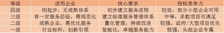 ITSS(信息技术服务标准)一共有4个级别,四级最低,一级最高。