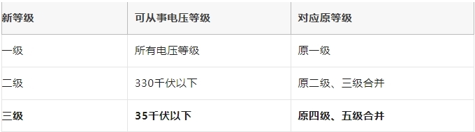 新规将原五级体系优化为三级,业务范围按电压等级划分: